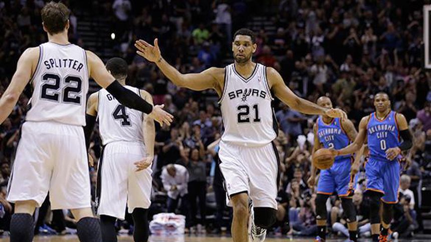 Oklahoma City pasó sin anotar dos minutos a mediados del tercer cuarto, mientras San Antonio ampliaba su ventaja a 76-50 con un par de tiros libres de Duncan a falta de 6:20.