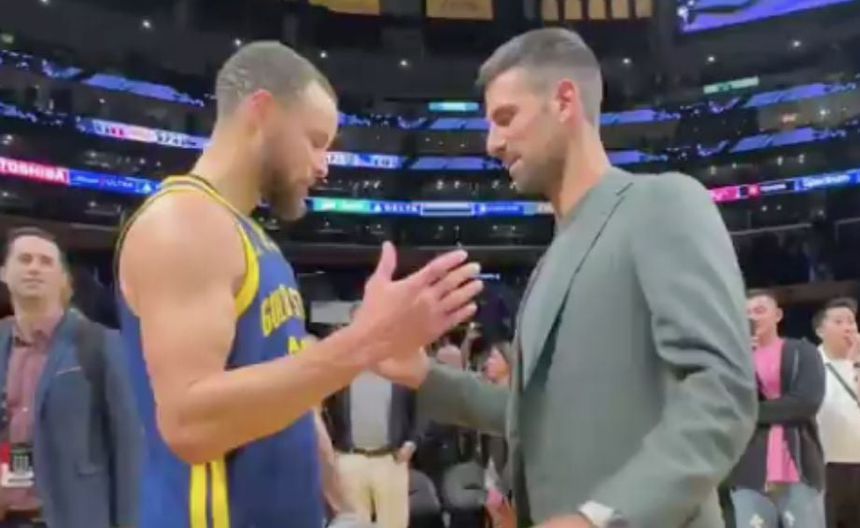Curry, que jugó 34 minutos para seis rebotes, cinco asistencias y 31 puntos, regaló el jersey de ese juego firmado para Djokovic, mientras que Novak le firmó una raqueta al cuatro veces campeón de la Asociación.