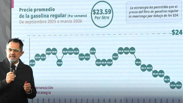 Aquí cómo ha ido comportándose nunca llegando a los 24 (pesos) en todo este periodo el promedio ha estado en 23 pesos con 59 centavos el litro destacando las últimas semanas que está en 23.54 en próximos días se va a renovar esta estrategia pero es muy importante esta información para todas y para todos”, agregó el funcionario.