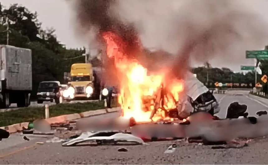 El siniestro involucró una Urvan de transporte público, un vehículo particular tipo Ikon y un camión de carga con doble remolque que transportaba cervezas. Según los primeros informes, la Urvan chocó por alcance contra el Ikon, perdió el control e invadió el carril contrario, donde fue embestida de frente por el tráiler. El impacto provocó que la unidad de transporte se incendiara, dejando a varias personas atrapadas en el interior.
