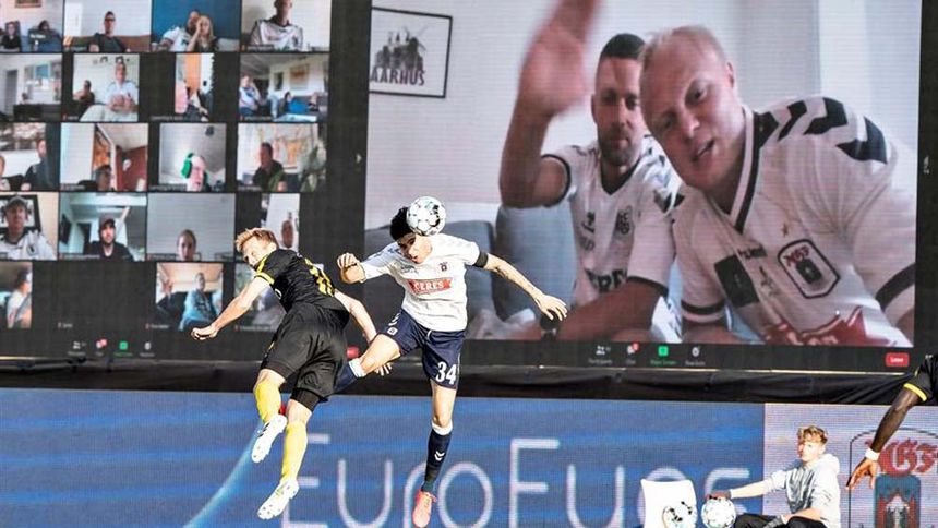 Sin mucho ambiente y con interacción limitada: así fue el estreno de la grada virtual, el invento del AGF para compensar la ausencia de público en las gradas por la pandemia del Covid-19 en el regreso de la liga danesa tras dos meses, acorde con un gris derbi comarcal (1-1).