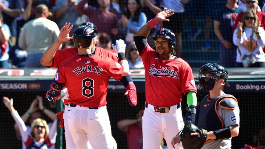 Lane Thomas pegó en tanto un jonrón de tres carreras como parte de un ataque de cinco anotaciones antes de que Detroit consiguiera un out. Los Guardianes apagaron luego la luz con un bullpen que completó un duelo de 4 hits el sábado, para blanquear 7-0 a los Tigres, en el primer juego de la Serie Divisional de la Liga Americana.