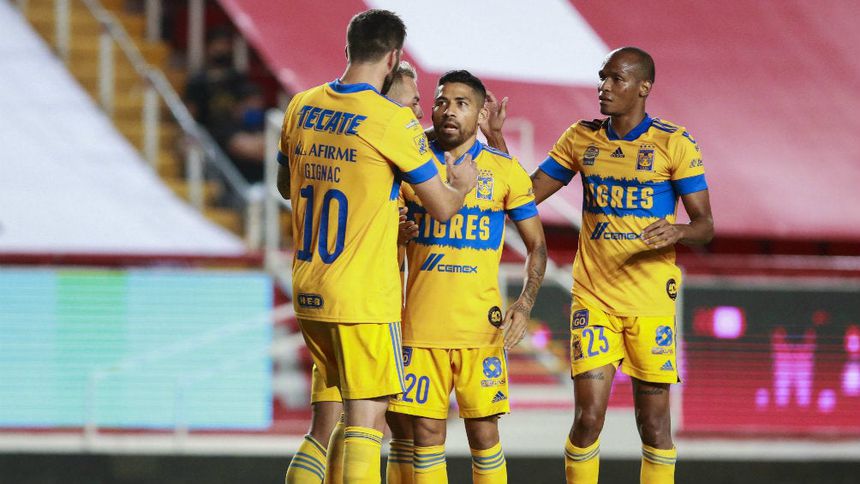 Jugadores de Tigres celebran gol ante Necaxa | IMAGO7