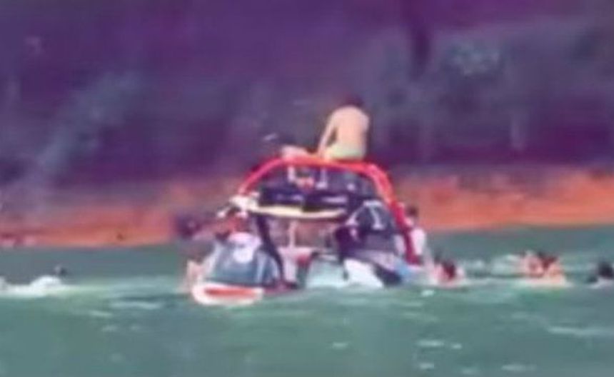 En un video que circuló en redes sociales, se observa cómo los ocupantes de la lancha saltan de la embarcación para poder escapar del hundimiento.