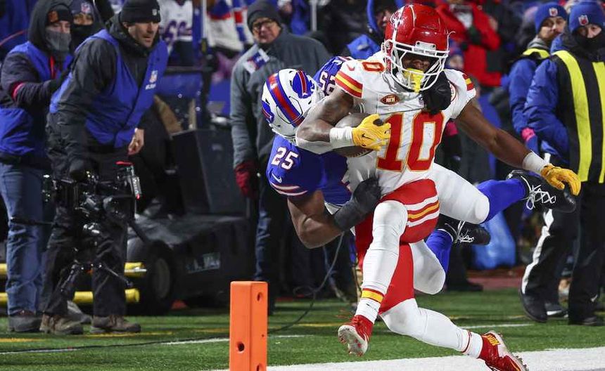 Mientras el receptor abierto de los Chiefs, Márquez Valdés-Scantling, intentaba atrapar un pase de touchdown de Patrick Mahomes en un tercer intento para poner a su equipo enfrente en el marcador.
