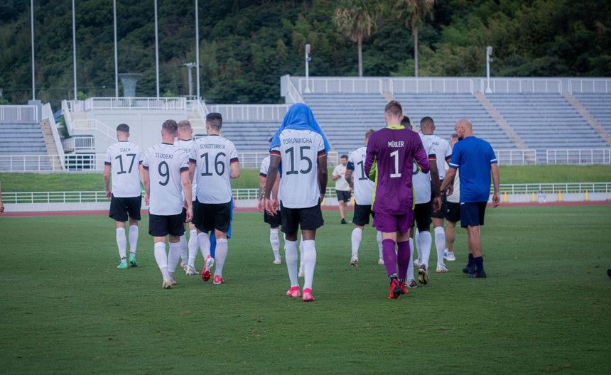 “El partido terminó cinco minutos antes con marcador de 1-1. Los jugadores alemanes dejaron el campo después de que Jordan Torunarigha fuera abusado racialmente”, escribió la cuenta oficial de la selección alemana en Twitter.