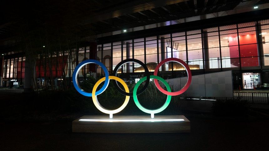 Aros Olímpicos iluminados en el aeropuerto de Tokio | AP