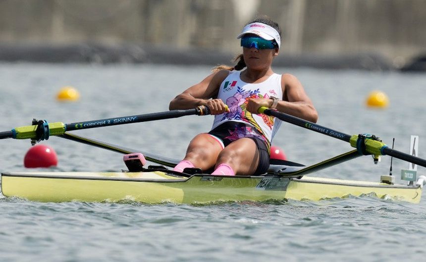La remera mexicana Kenia Lechuga vio acción en los Cuartos de Final de la prueba Skiff Femenino de los Juegos Olímpicos y terminó en el cuarto lugar de su hit.