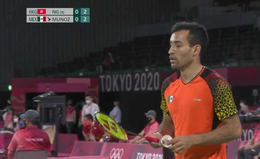 El mexicano Lino Muñoz debutó en el bádminton en los Juegos Olímpicos de Tokio 2020, y cayó ante Ng Ka Long de Hong Kong.