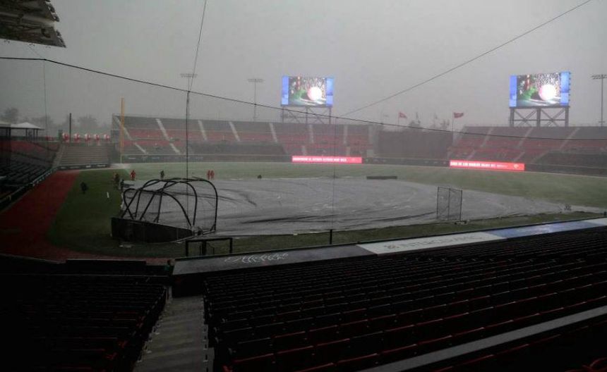 Una fuerte lluvia sobre el oriente de la Ciudad de México afectó al tercer juego de la serie entre Diablos Rojos y los Bravos de León, lo que sería una dura prueba para el sistema de filtración de agua del nuevo estadio de los Pingos.