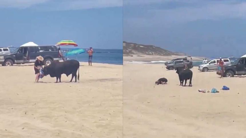 En redes sociales se ha hecho viral el video en donde se ve a un toro irrumpir en una playa de Los Cabos, Baja California, atacando a dos mujeres que se encontraban en el lugar, incluida una que llevaba un bebé en brazos.
