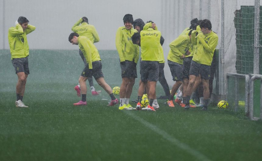 El cuadro verdiblanco, que se preparaba para una sesión de entrenamiento, tuvo que aplazar el inicio de la misma tras el torrencial aguacero y los vientos que corrían sobre el predio donde se encuentra su lugar de concentración.