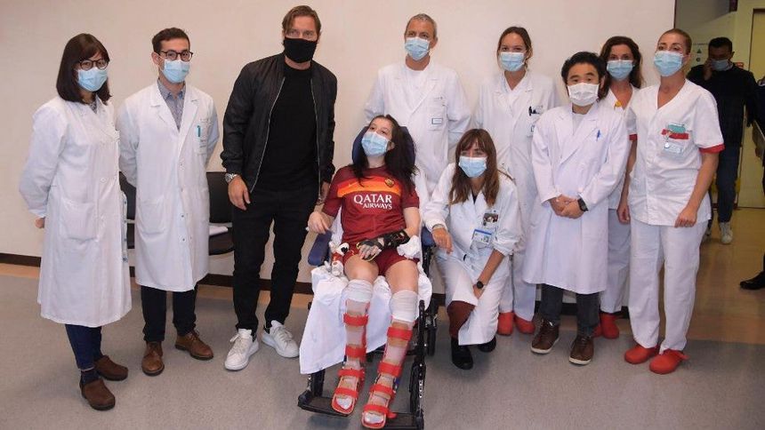 Después de unos días, Totti acudió al Hospital Gemelli para visitar a la joven, a quien le regaló una playera de la Roma firmada.