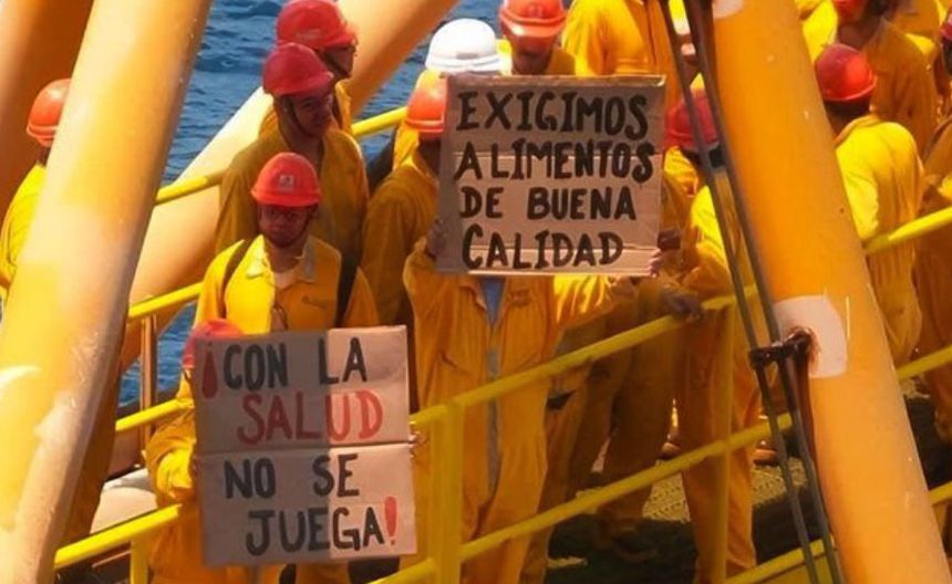 Los trabajadores de Pemex que laboran en la plataforma Pol-Alfa, en Campeche, iniciaron una huelga de hambre de 48 horas por la falta de alimentos en buen estado.