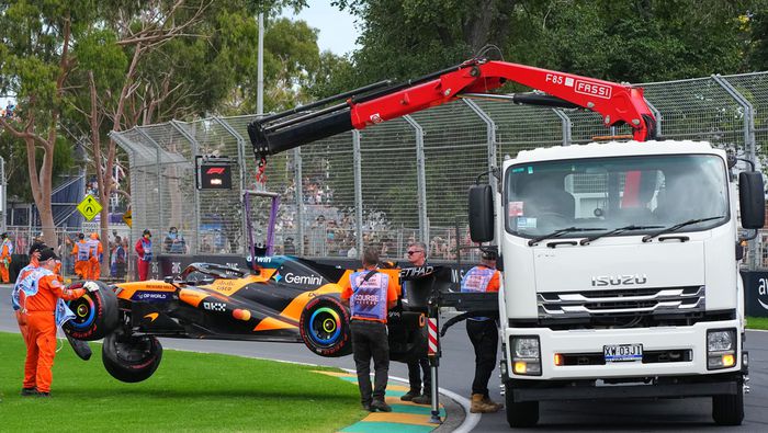El maleficio de Australia va a seguir un año más. Con la quinta posición en la bolsa y con el apoyo de su gente, Piastri no logró hacer valer todo el impulso y durante la cuarta zona en la pista su auto tocó ligeramente el piano de seguridad, ante esta acción el auto del jovén piloto se fue descontrolado ante una de las mallas de seguridad causando su destrucción.