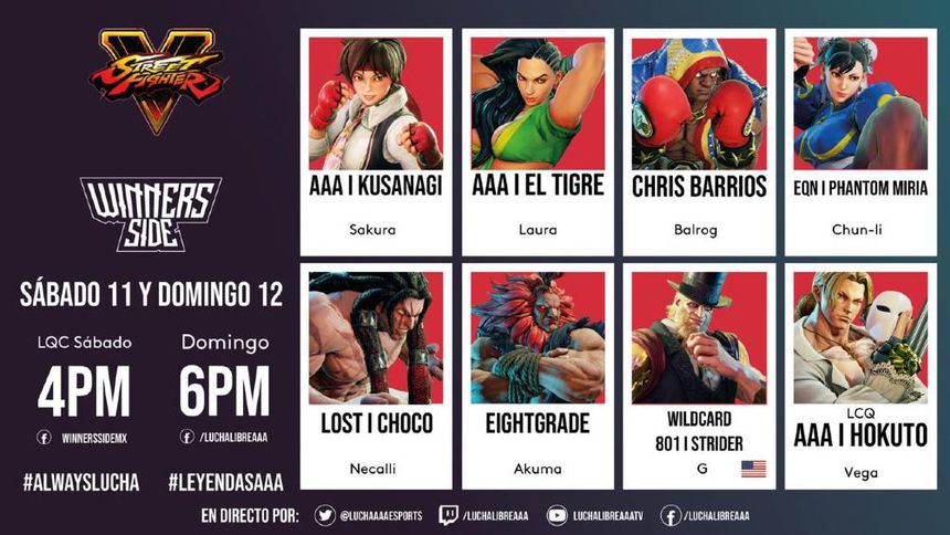 Los combates comenzarán con el juego Street Fighter V y las batallas serán las siguientes: AAA Kusanagi vs Chris Barrios, Eqnx Phantom Miria vs Eightgrade, AAA El Tigre vs Lost Choco y 801Strider vs AAA Hokuto.