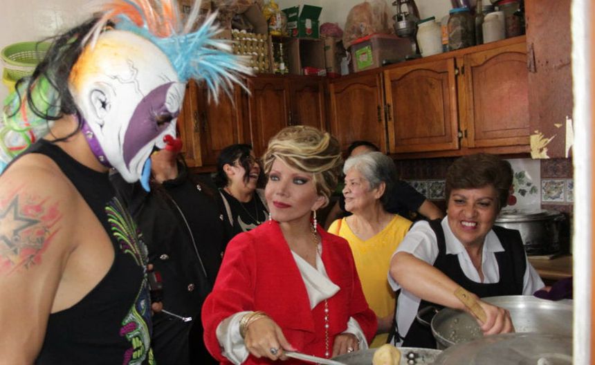 Psycho Clown y Marisela Peña con la gente de la fundación | AAA