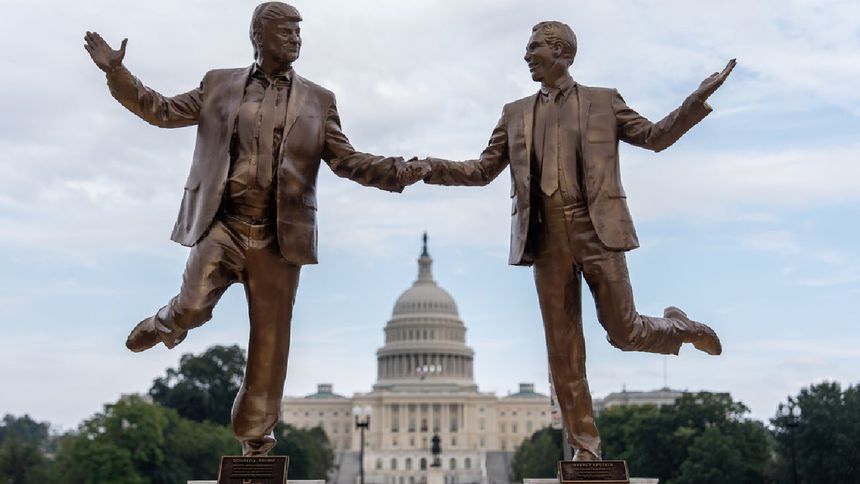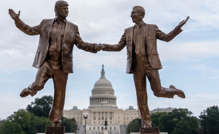 Trump y Epstein, tomados de la mano frente al Capitolio; aparece polémica estatua en Washington
