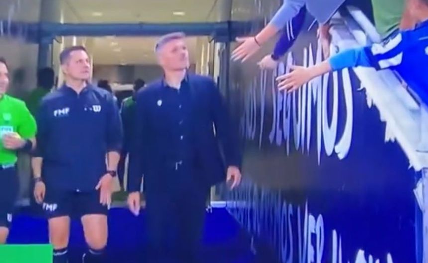 Al salir de los vestidores para dar inicio a la parte complementaria, Ortiz caminaba a la par del árbitro central del encuentro. A escasos metros de ingresar al terreno de juego, tres aficionados, incluidos dos menores de edad, le estiraron la mano al exdirector técnico de América.
