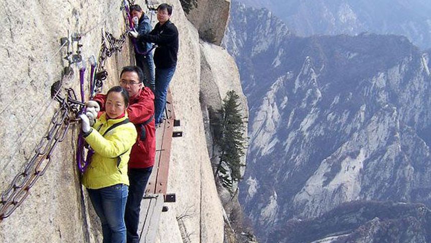 El camino, conocido como Chang Kong Cliff Road, en la montaña en Haushan, fue construido hace más de 700 años por ermitaños que buscaban a seres ';inmortales'; que creían vivían en las montañas.