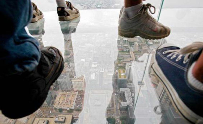 Un turista y su familia se encontraban en el mirador de cristal de la Torre Willis de Chicago cuando al posar sobre él se tronó.