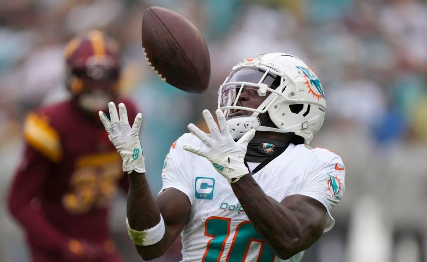 Hill, de 30 años, atrapó 119 pases y lideró la liga con 1.799 yardas y tres touchdowns la campaña anterior. Hill alcanzó las 1.700 yardas por aire en sus primeras dos temporadas con Miami tras ser adquirido de los Chiefs de Kansas City.