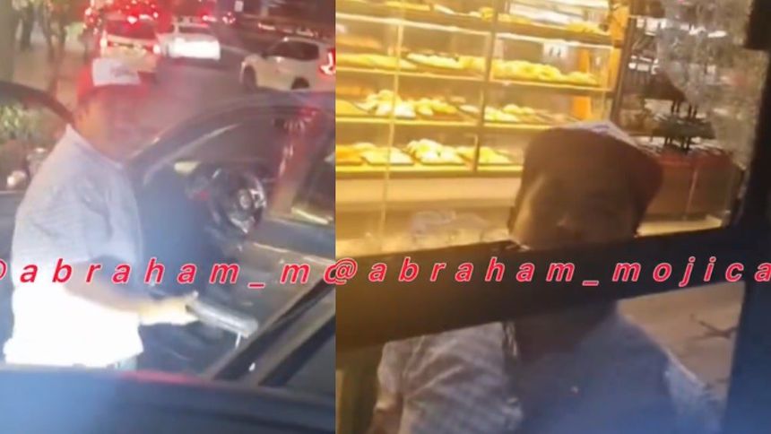 “Traigo a mi familia. Quieres matar a mi familia o qué, perro”, gritó completamente enojado el conductor del auto particular, quien saca una herramienta de su cajuela y golpea el cristal del chofer.