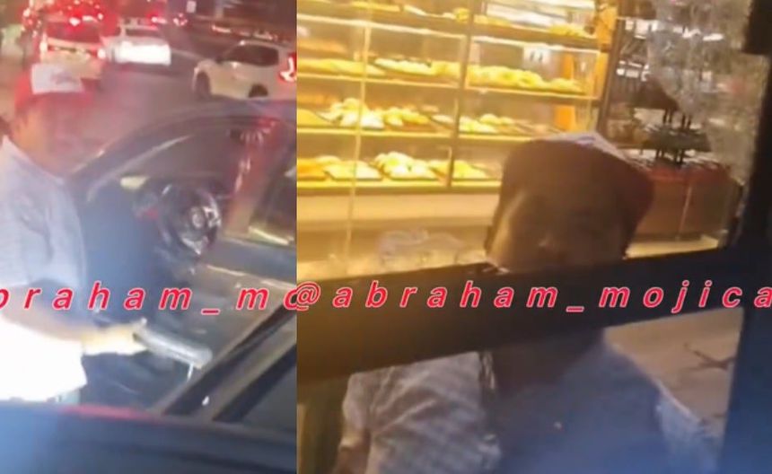 El chofer grabó en todo momento cómo el conductor del vehículo lo intercepta y saca un arma blanca y empieza a golpear el vidrio hasta estrellarlo.