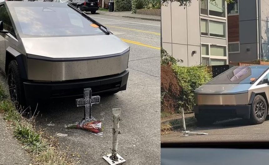 Un tesla cybertruck abandonado en la calle se convierte en atracción turística