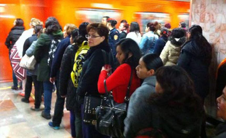 Usuarios hacen filas para abordar Metro en Balderas
