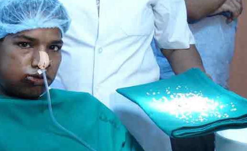 Ashik Gavai, un joven, de 17 años, de la India, acudió al dentista por un fuerte dolor de muela, pero al ser atendido por los médicos la sorpresa fue mayúscula, pues no se trataba de un simple dolor de muelas. Los cirujanos dentistas le extirparon 232 dientes.