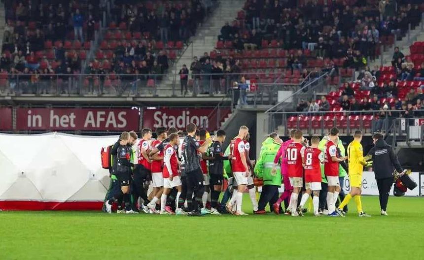 El incidente ocurrió en los minutos finales del juego. Sin que mediara contacto alguno con otro jugador, Bas Dost cayó al césped de manera abrupta, generando por lo que el árbitro decidió detener el partido mientras compañeros y rivales le trataban de ayudar.