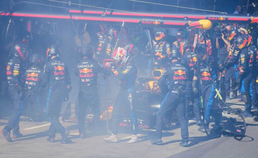Tras ello, empezó a salir humo del RB20 y Verstappen apenas logró regresar a boxes, donde incluso hubo unas pequeñas explosiones y se desprendieron algunas piezas del auto. Ya en el garage, los mecánicos de Milton Keynes lograron controlar el fuego, que se originó en la zona de los neumáticos y por ello se supo que la falla estuvo en los frenos.