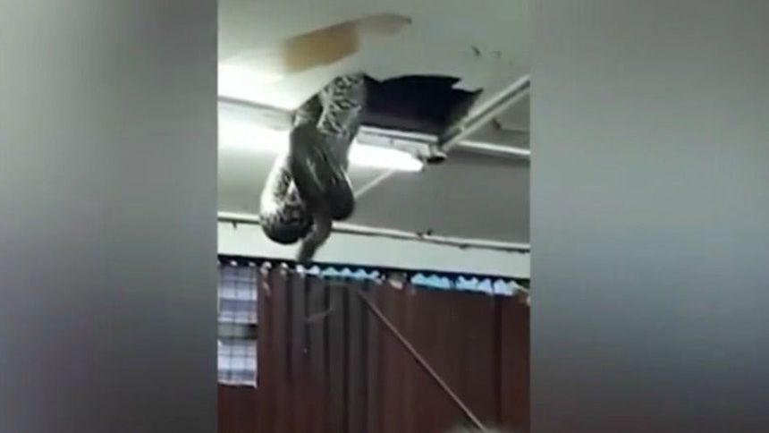 Víbora gigante cae del techo en un restaurante