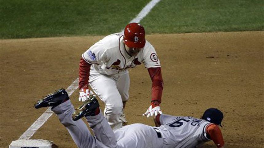 El Juego 3 de esta Serie Mundial siempre será recordado por la decisión que los umpires tomaron para acabar el partido. Allen Craig corrió a home, sin llegar a tocarlo, pero el umpire principal cantó safe por una obstrucción previa. Victoria para San Luis.