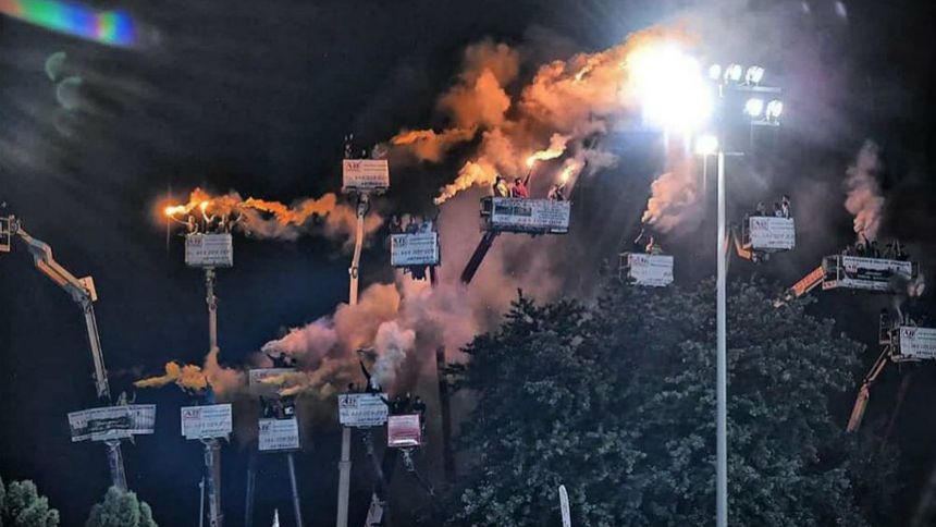 Los aficionados se organizaron en redes sociales para rentar 18 grúas, de tal manera que dentro de tal manera que pudieron ver el duelo contra el GKM Grudzia a las afueras de la pista dentro de una caja sostenida por el gancho de seguridad de las grúas.