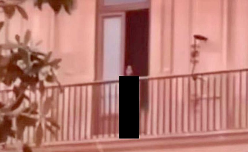 En la breve grabación de 18 segundos se puede observar que de una de las puertas del balcón se asoma una mujer, que rápidamente se esconde y luego decide caminar más hacia adentro, lográndose observar que no trae ropa.