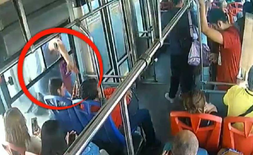 La mujer sorprendida sólo voltea, pero no alcanza a ver quién le arrebató su celular ni entender bien lo que pasó, mientras que otros usuarios de igual manera quedan atónitos e imposibilitados de hacer algo, ya que el camión se encuentra en marcha.