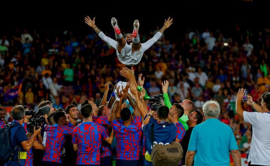 Incluso al final, fue a levantar el trofeo Joan Gamper con su exequipo y sus excompañeros lo cargaron, para demostrarle el cariño a un jugador que ganó prácticamente todo con el Barcelona.