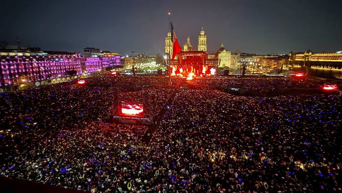 Una vez dentro, la colombiana se preparó y, al igual que en 2007, salió al escenario del Zócalo para ofrecer un concierto gratuito ante miles de personas.