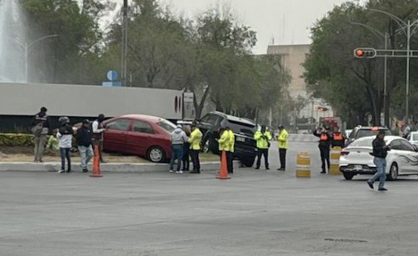 Este último auto se pasó la luz roja para querer incorporarse a Paseo de la Reforma, pero no se dio cuenta que la camioneta iba avanzando, lo que provocó el choque e hizo que perdieran el control y se fueran sobre la fuente.