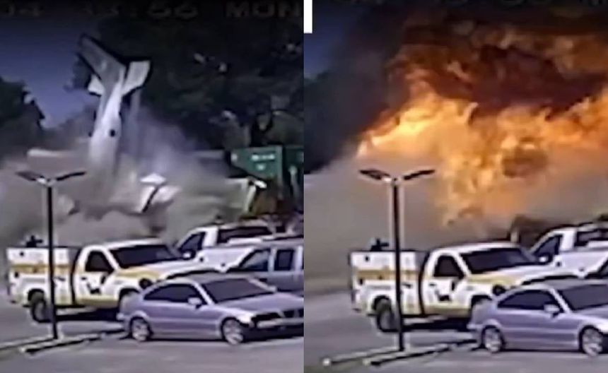VIDEO: Avión se estrella en estacionamiento de Texas y provoca incendio de vehículos