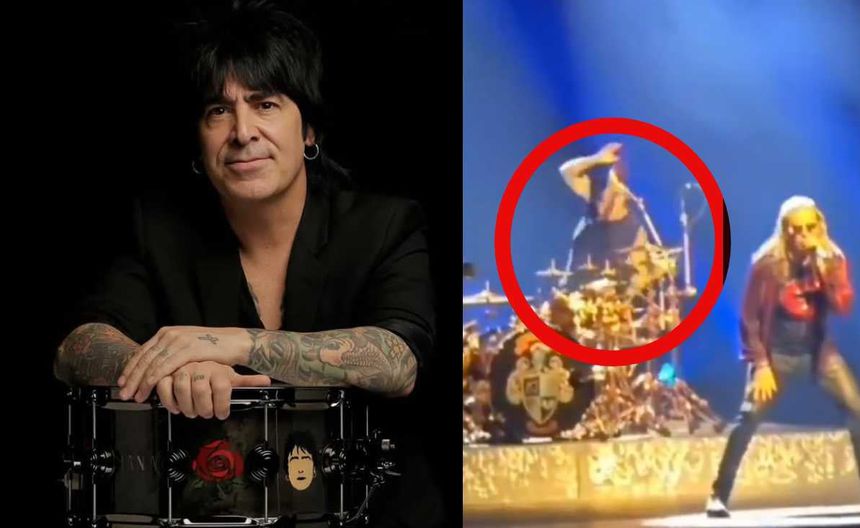 El legendario baterista Álex González, conocido como “El Animal”, ofrecía su característico show lleno de energía, cuando al subirse a su banco e intentar un giro sobre su propio eje, perdió el equilibrio y terminó cayendo al suelo, llevándose consigo parte de los instrumentos de su batería.