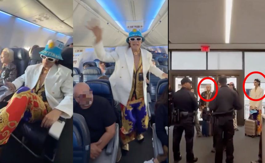 El performance a bordo desató miradas curiosas y otras tantas de desaprobación. El momento se tornó tenso cuando una azafata intentó pasar por el pasillo y uno de ellos no notó su presencia, provocando un roce no intencionado. La respuesta fue inmediata y contundente.