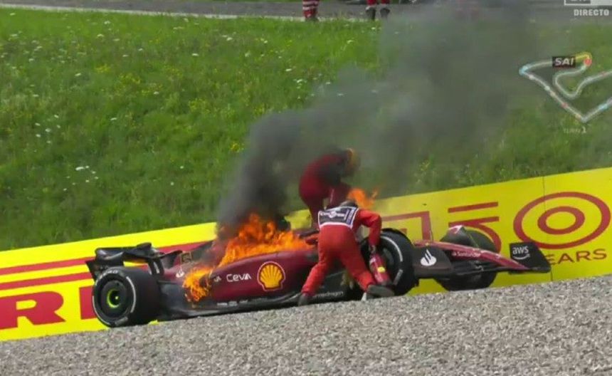 Video: Carlos Sainz abandonó el GP de Austria con su Ferrari en llamas