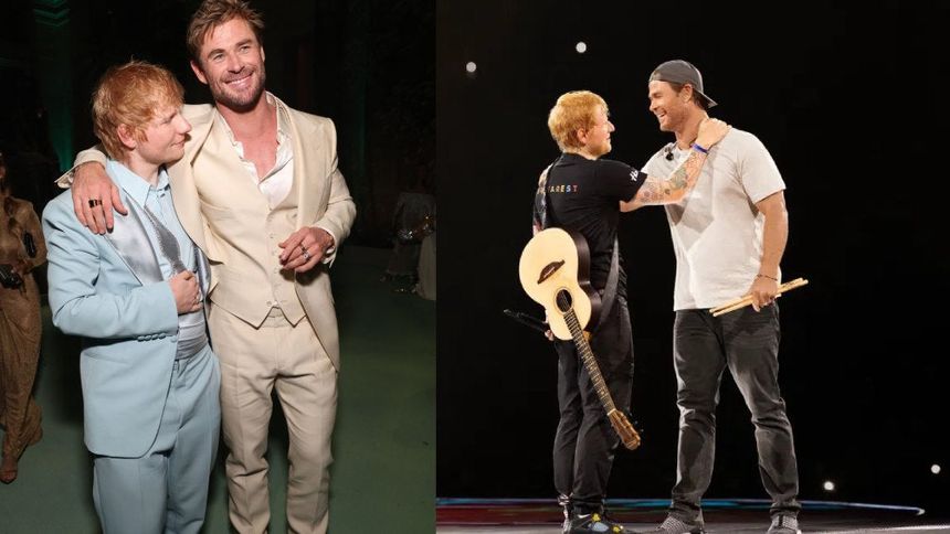 “Logré que (Chris Hemsworth) aprendiera a tocar la batería para mi espectáculo en el estadio”, expresó Ed Sheeran en una publicación de Instagram después del espectáculo.