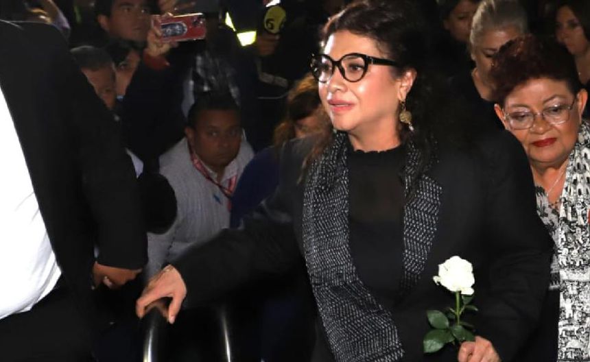 Vestida toda de negro y con una rosa blanca en la mano, la morenista empezó a saludar a las personas que estaban afueran de las instalaciones de Gayosso en Sullivan, cerca del Centro de la CDMX.