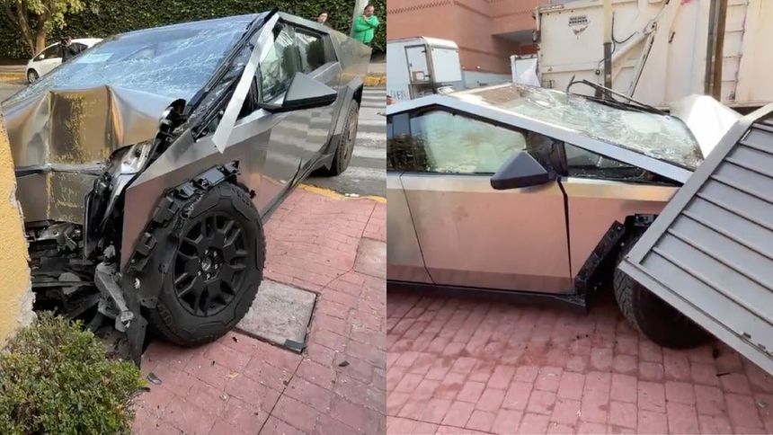 VIDEO: Cybertruck, de 2 millones de pesos, queda destruida al impactarse contra una casa