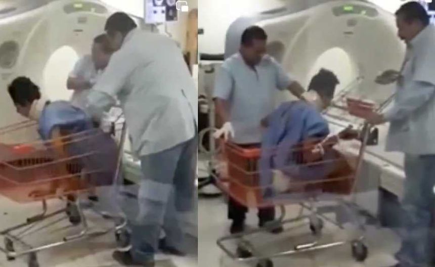 Desde hace unos días ha circulado en plataformas como TikTok y Twitter, ahora X, un video grabado en un hospital del Instituto Mexicano del Seguro Social de Chiapas, en donde un médico y un enfermero suben a un paciente a un carrito de supermercado luego de practicarle una resonancia magnética, aparentemente porque no había camilla o silla de ruedas para moverlo.