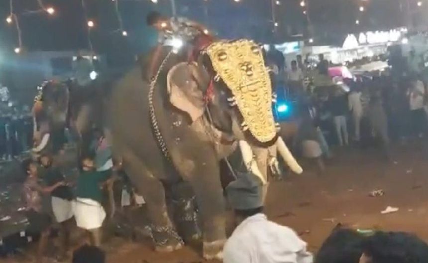 En el festival anual de Puthiyangadi en Kerala, India, un elefante se salió de control lo que ocasionó caos y pánico entre la multitud que corría para no ser aplastada.